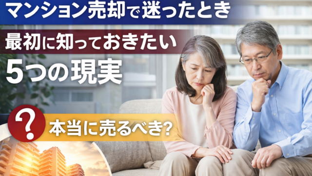 マンションを所有していると、年齢とともに「この先、持ち続けて大丈夫だろうか」と感じることが増えてきます。ただ、こうした不安を抱いているからといって、今すぐ売ると決める必要はありません。この記事は、マンションを「売るか・売らないか」で迷ってい...